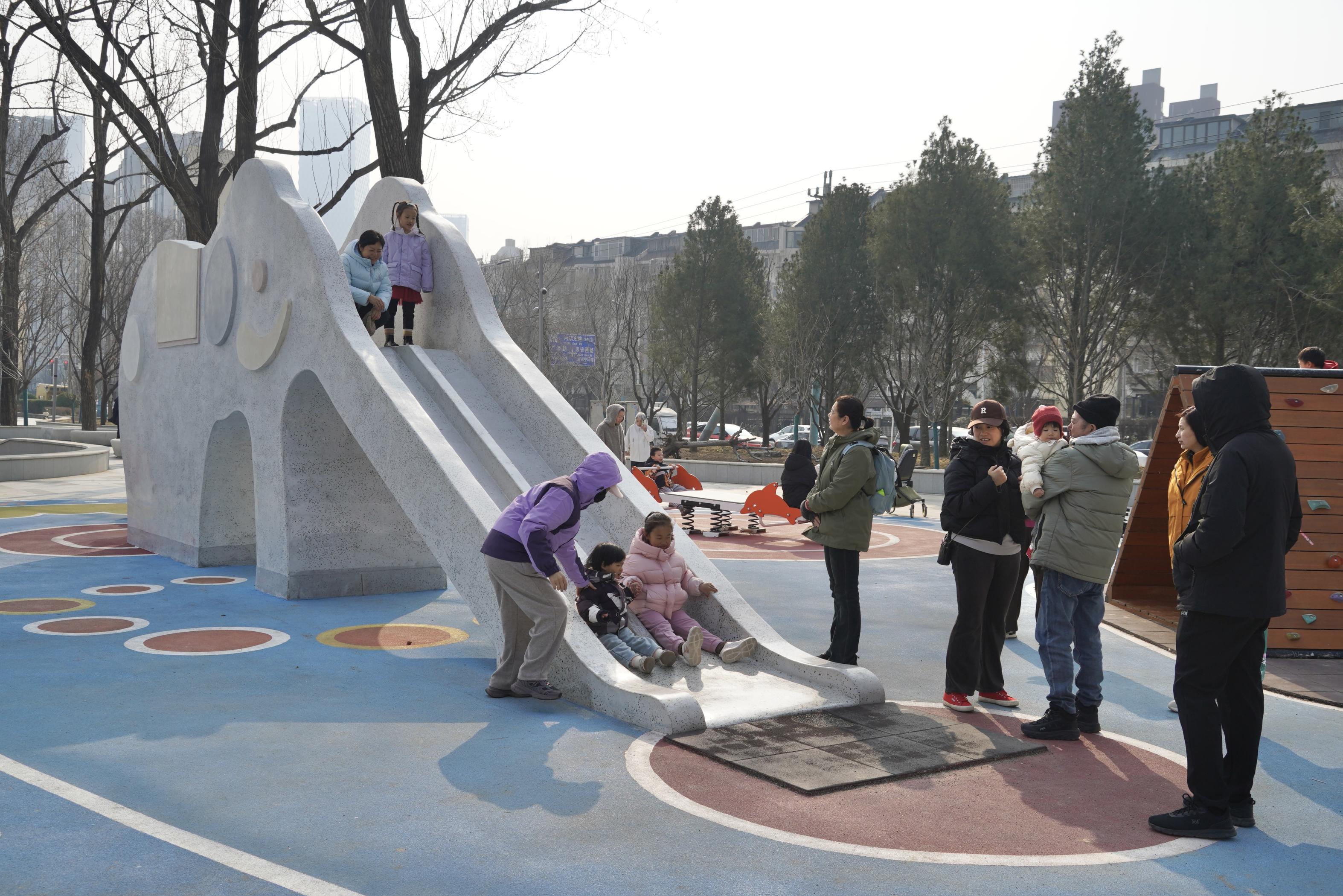 此次,朝阳区将大象IP融入滨水空间建设,在河道两岸打造“大象溪谷”主题象群景观,呼应“情感传承、家风延续”的朴素理念,让公共设施小品与家庭情感深度结合。